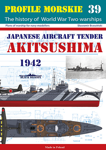 | Novelties: Paper books in the new standard: the one-sided printing and the possibility of unfolding the publication permit simultaneous using from all materials. It is possible after work to fold the publication up and to put back on the shelf. Perfect for modellers ;-) (click on the cover in order to enter) Japanese tender AKITSUSHIMA (1943) PROFILE MORSKIE No 39